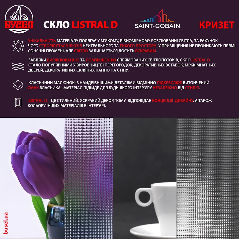 приватних осіб, пропонується модернове декоративне скло «Listral D» товщиною 4 мм