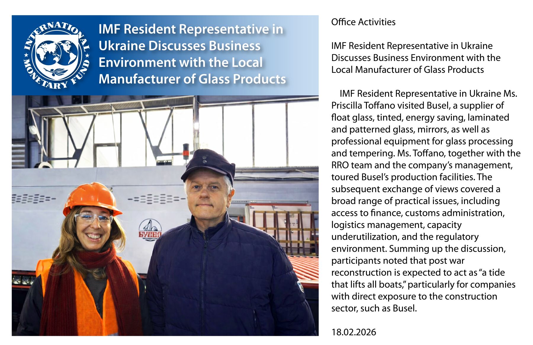 18 лютого 2026 року в гості до нашої компанії завітали представники Офісу Міжнародного Валютного Фонду в Україні на чолі з Головою представництва Пані Прішілою Тофано.